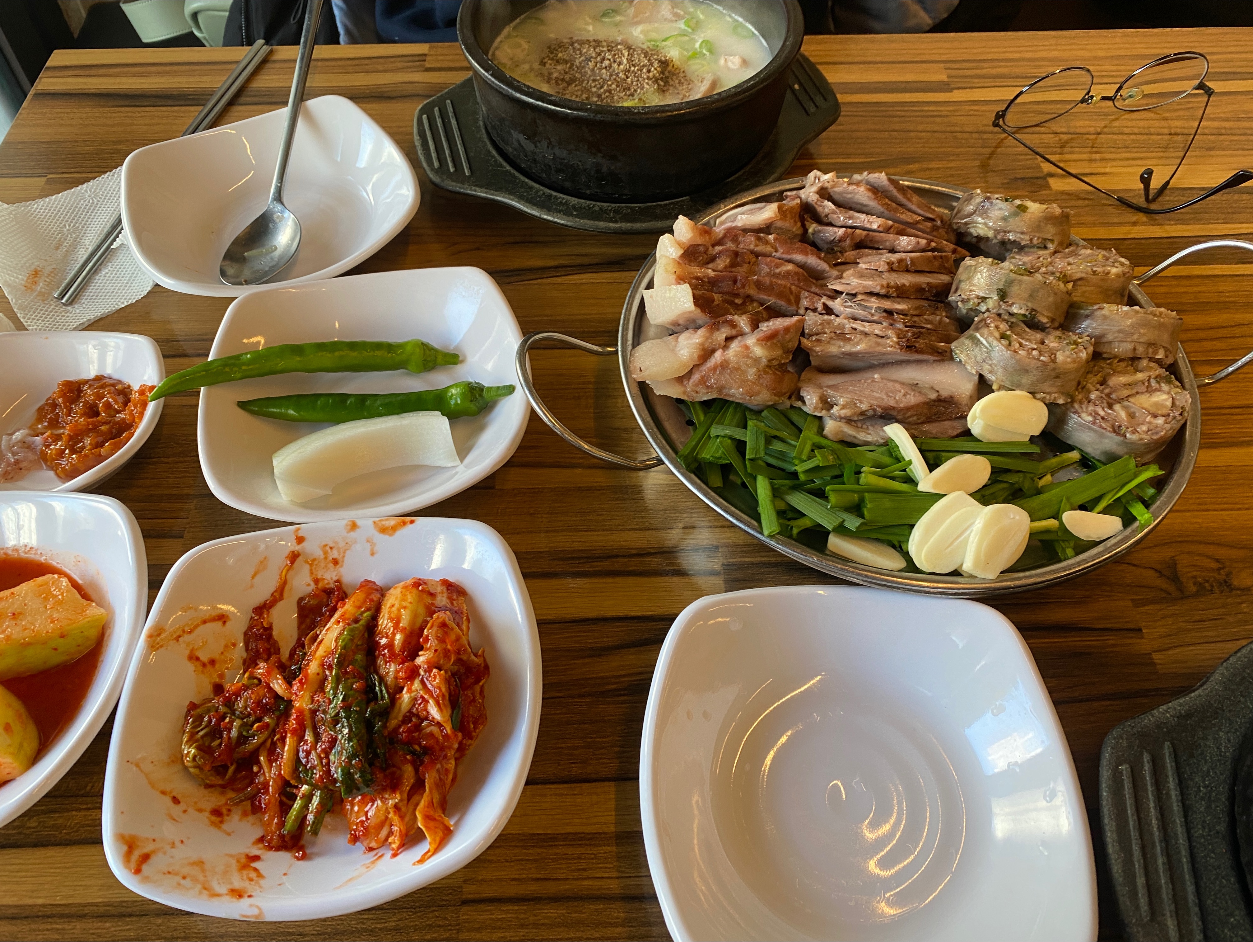 보통 2명에서 오면, 모듬(소)만 시키고 밥을 한공기정도 하시면 서비스로 순대국을 줍니다.