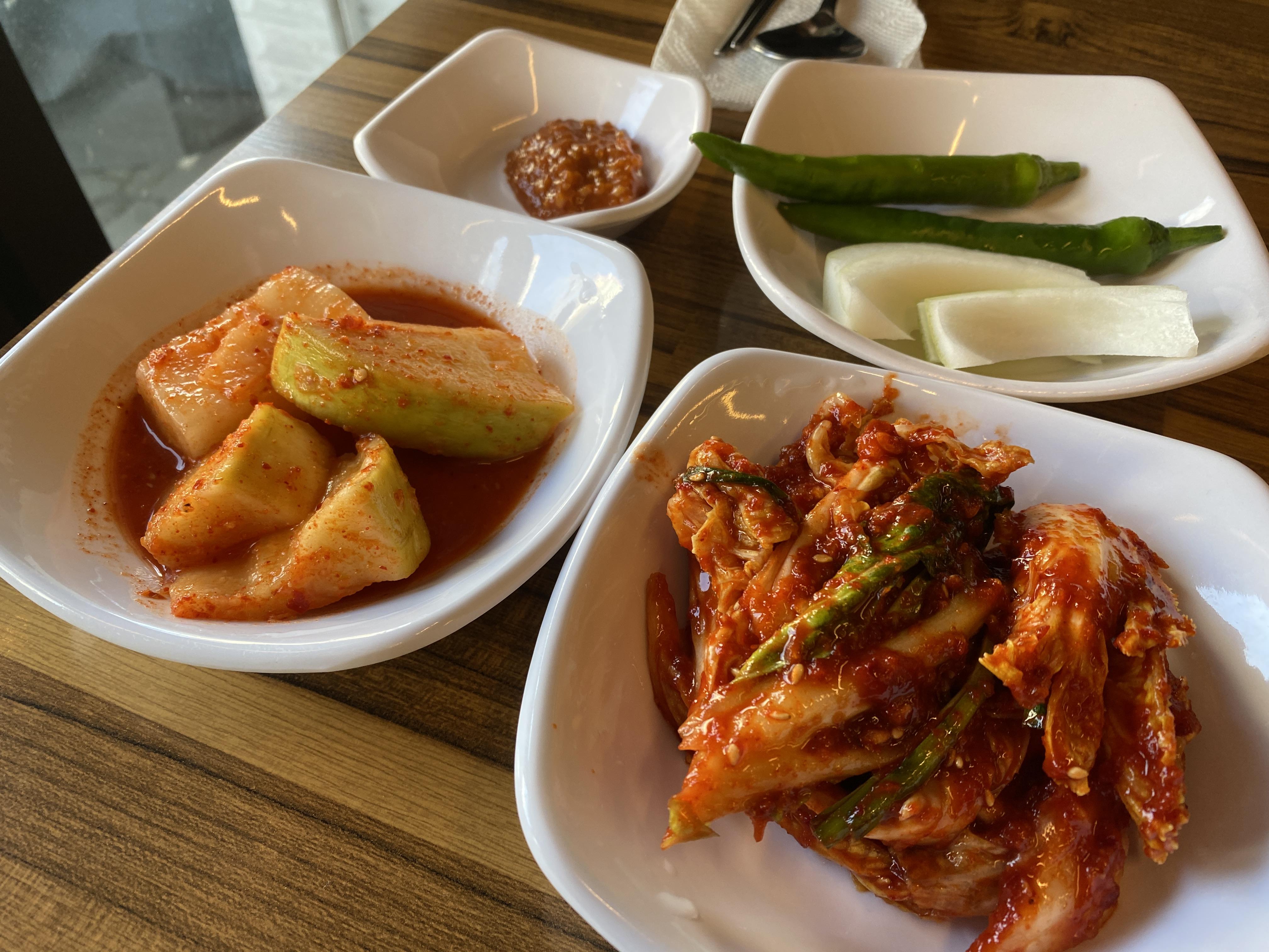 김치는요, 매콤합니다. 신김치는 아니에요.