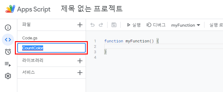 아래 코드를 복사하여 붙여 넣은 다음 저장을 해주세요. 첫줄의 function countcolor 을 기억해주세요. 나중에 불러오는 코드니깐요~